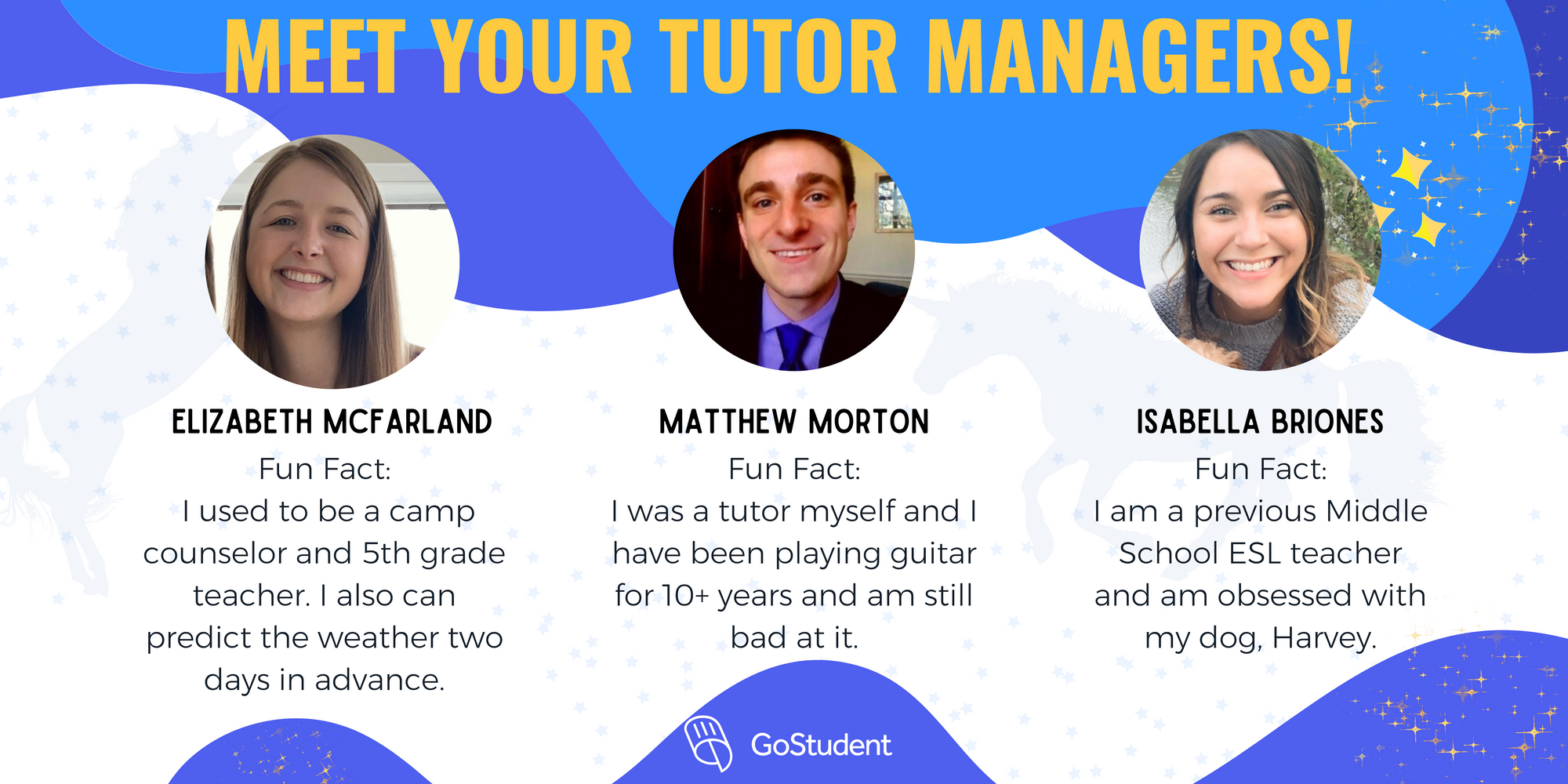 👋Attention Tutors Your new Tutor Recruitment Managers are here! Check out their mini profiles below and the introductory video that they made just for you.